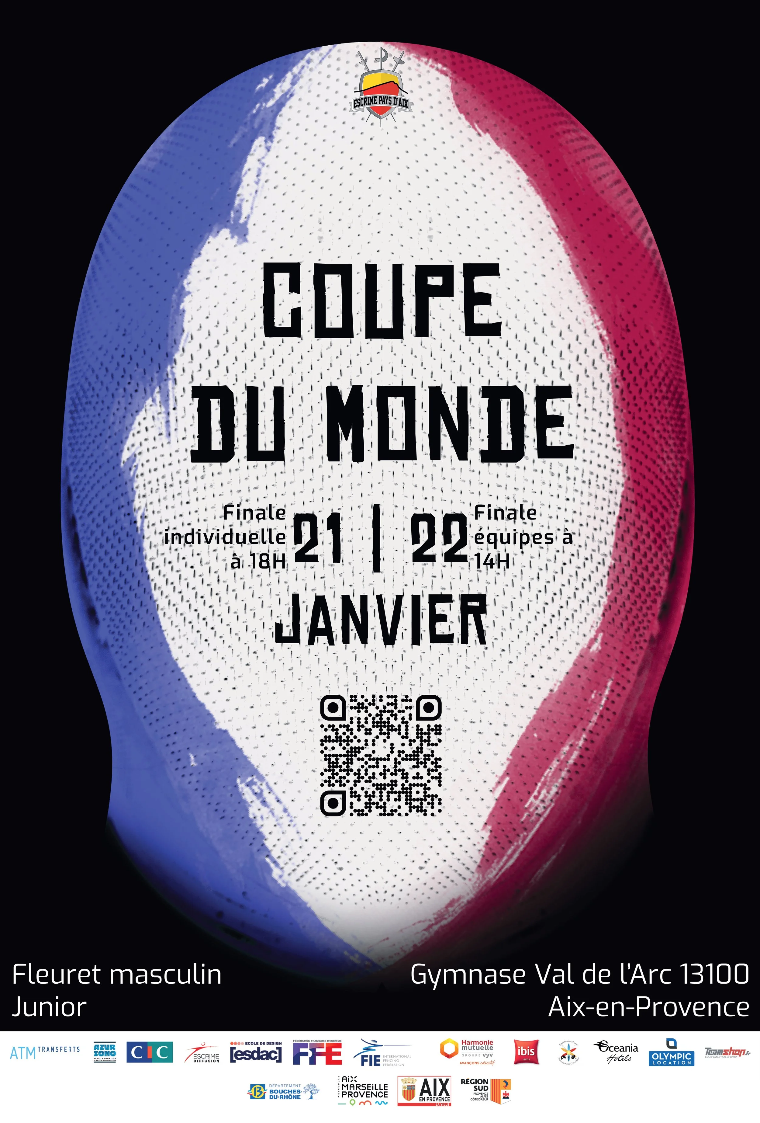 Notre école a été contactée par le club "Escrime pays d'Aix" qui souhaitait que nous réalisions deux affiches en une heure et demi, qui ont été jugées et sélectionnées pour leur tournoi de fleuret masculin junior.