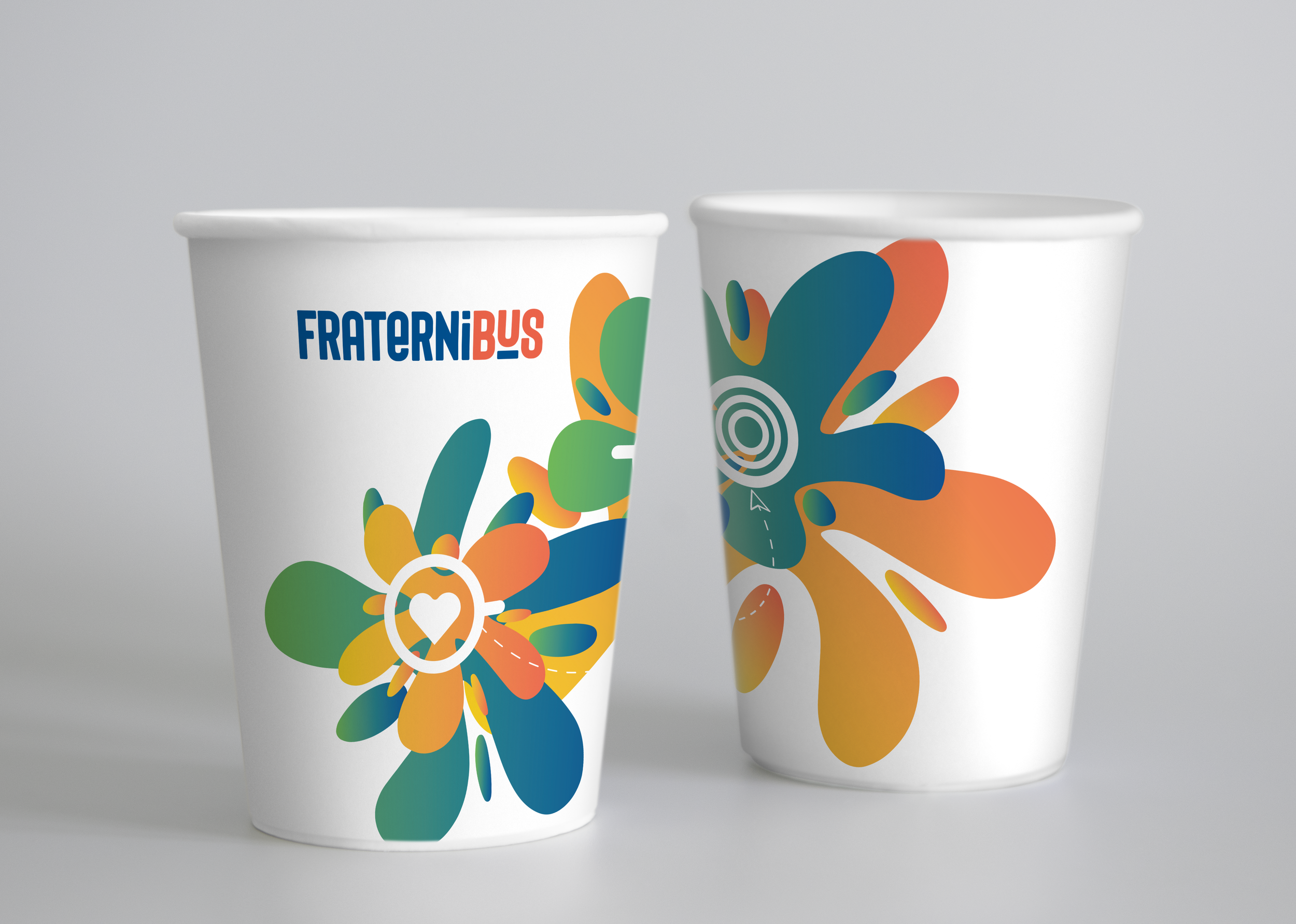 Une fois le car fait, nous avons décliné notre visuel en cartes de visites, gobelets et kakemono.